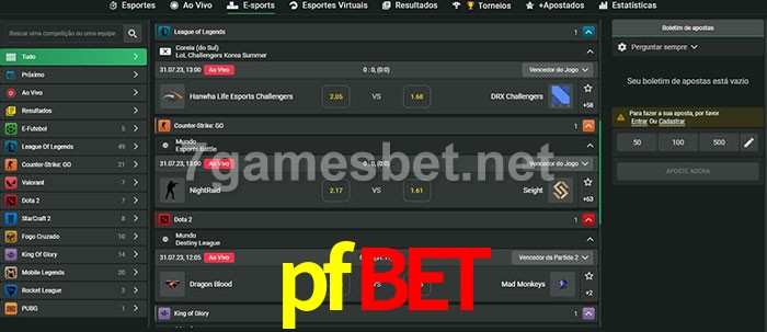 O pfbet oferece uma grande seleção de opções de apostas em e-sports com probabilidades competitivas